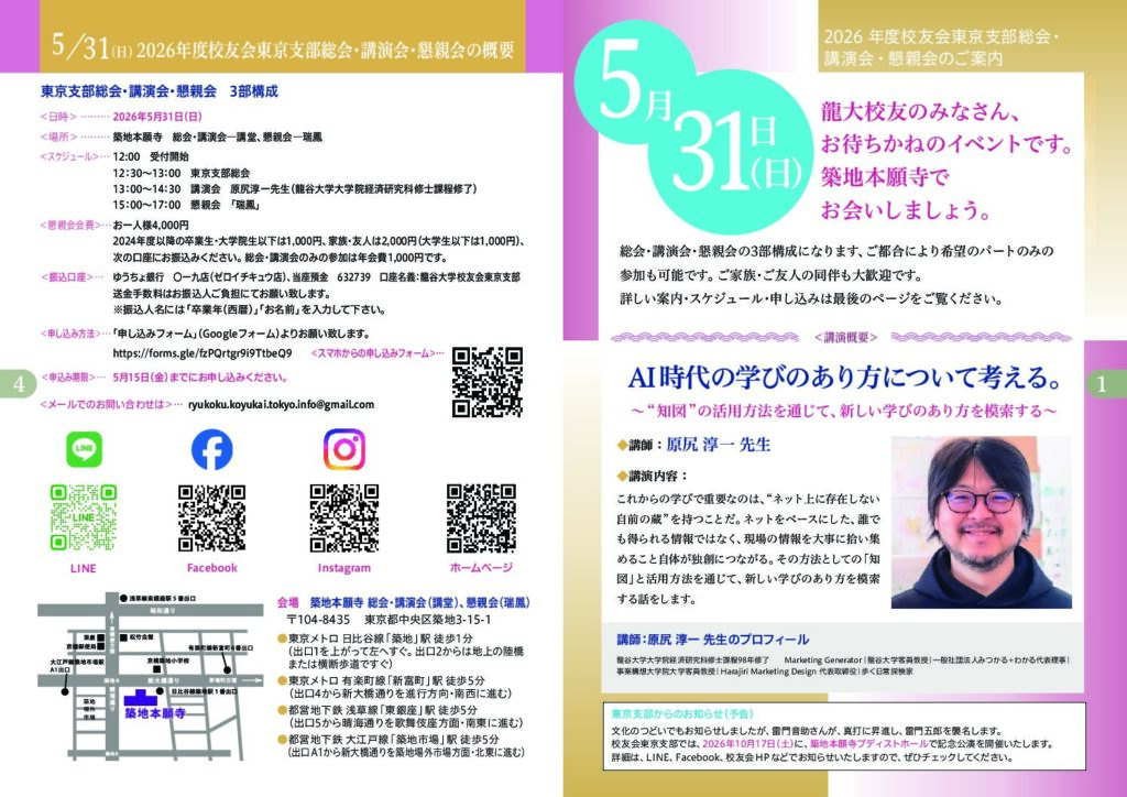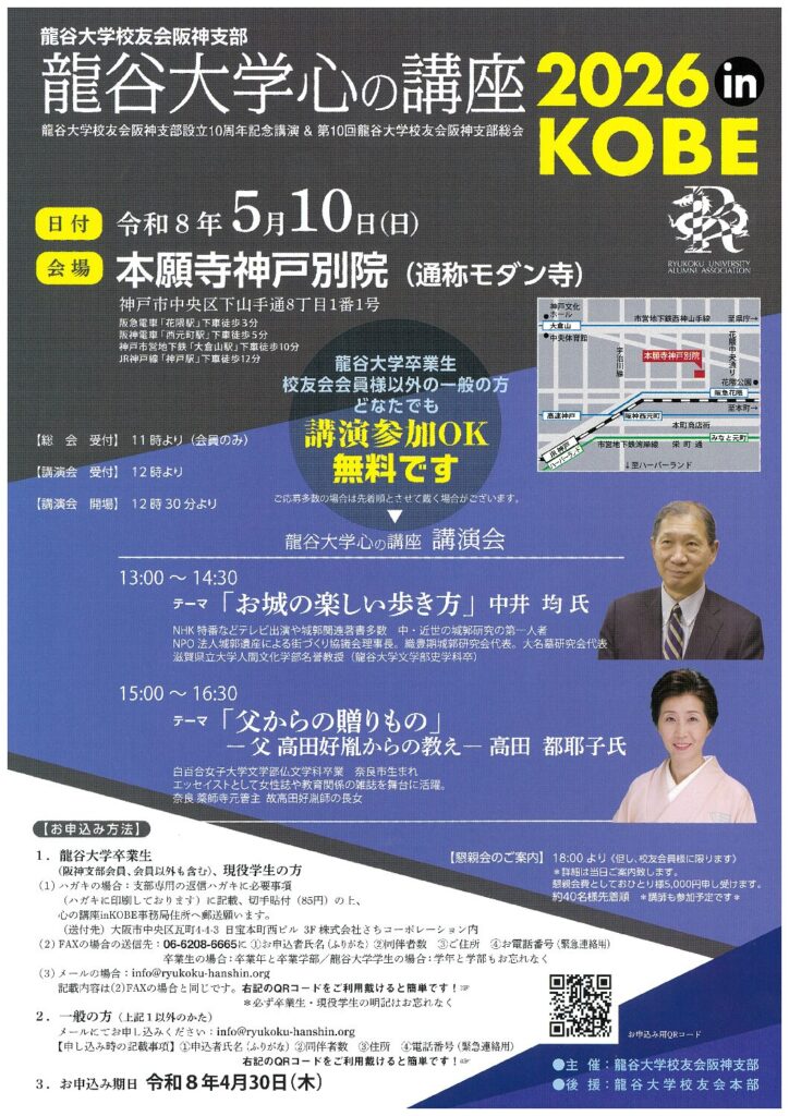 2026年5月10日(日)開催 阪神支部主催「龍谷大学心の講座」及び支部総会