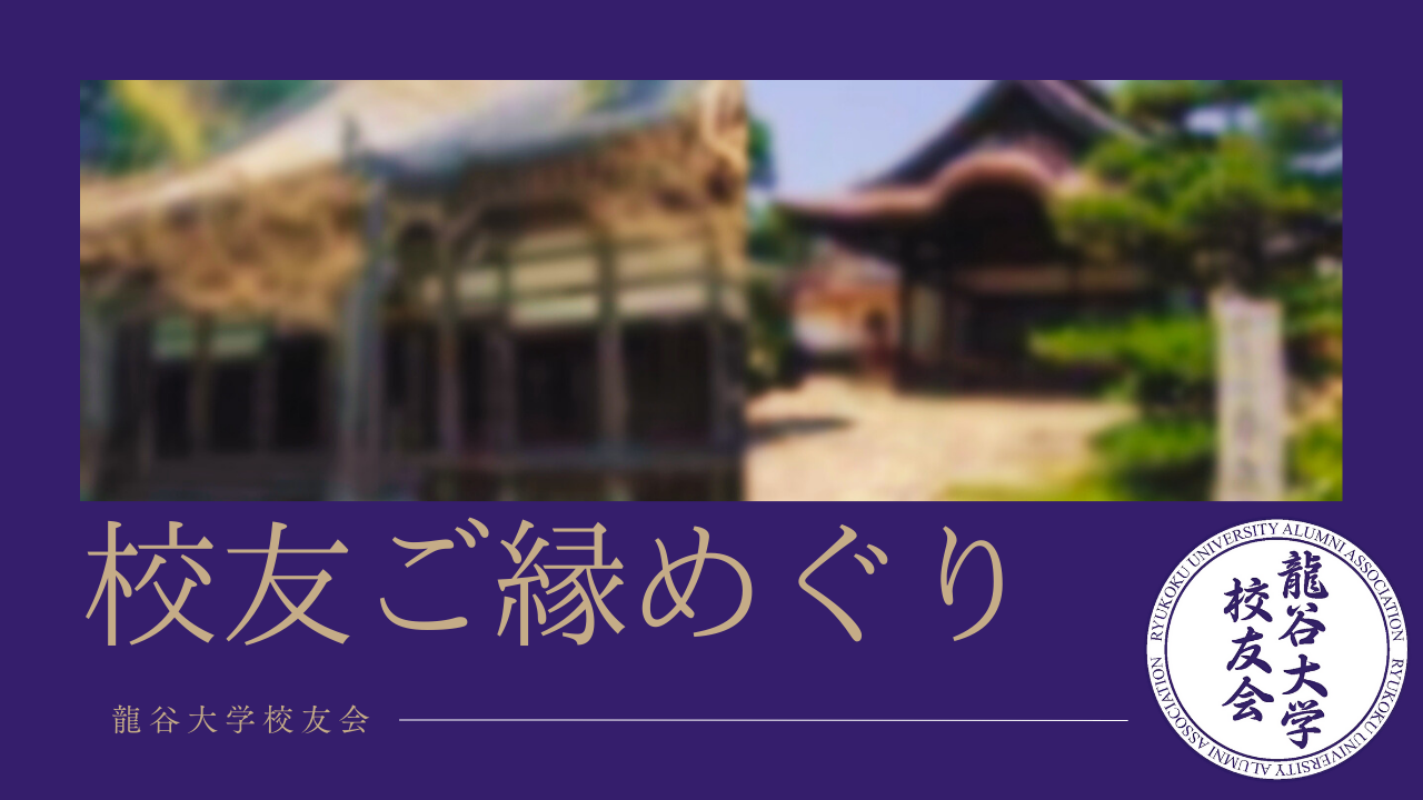 「龍谷大学 校友ご縁めぐり」は、龍谷大学の校友(卒業生)が、全国に広がっている校友に関係する寺院を知り、参詣することで、龍谷大学が育んできた仏教の学びに再び触れ、混とんとする社会のなかで不安を抱きながらも、えがたい、尊いいのちを生き抜く「新たなご縁」が生まれることを期待して名付けられたものです。