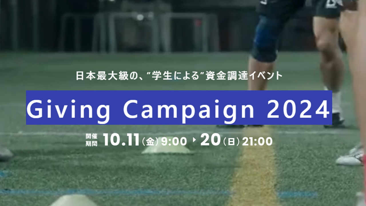 「Giving Campaign」とは、若き挑戦者にスポットライトを当て、新たな支援者を創出するためのオンラインチャリティーイベントです。