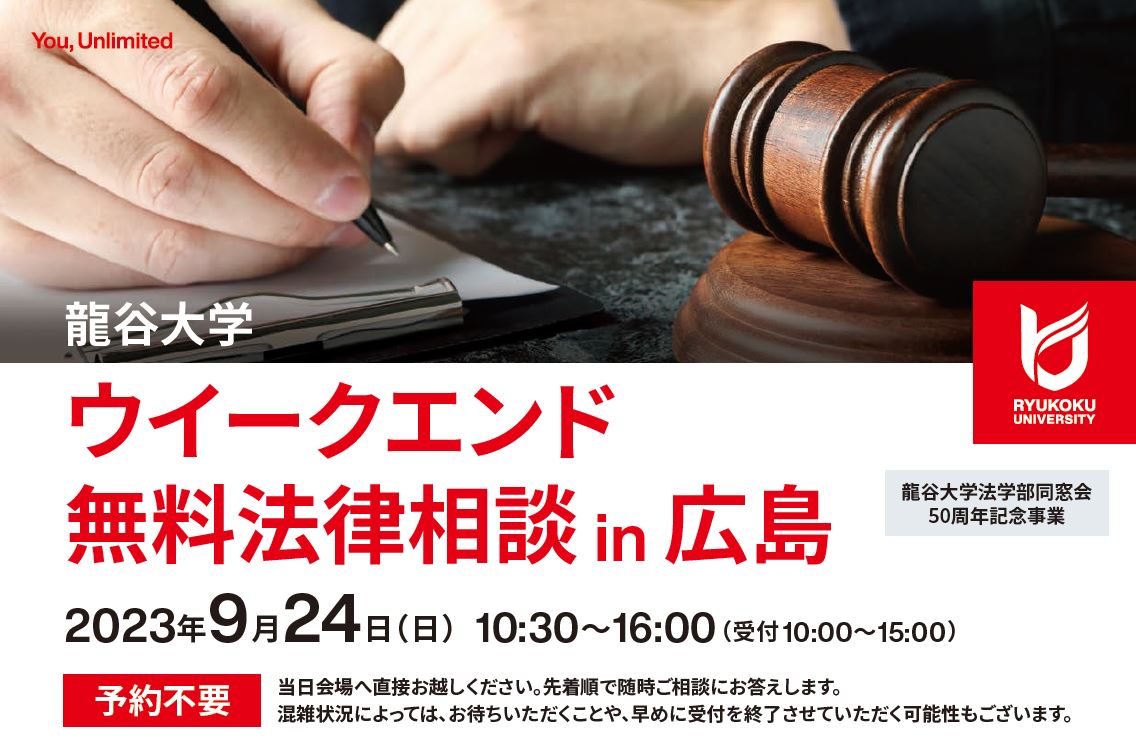※詳細については、下記の<法学部同窓会「ウィークエンド無料法律相談in広島」>よりご確認ください。