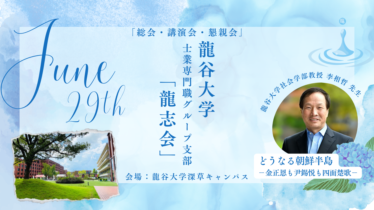 今回は、社会学部 李相哲教授に「~どうなる朝鮮半島~ 金正恩も尹錫悦も四面楚歌」と題して、現状の朝鮮半島問題についてご講演を頂きます。