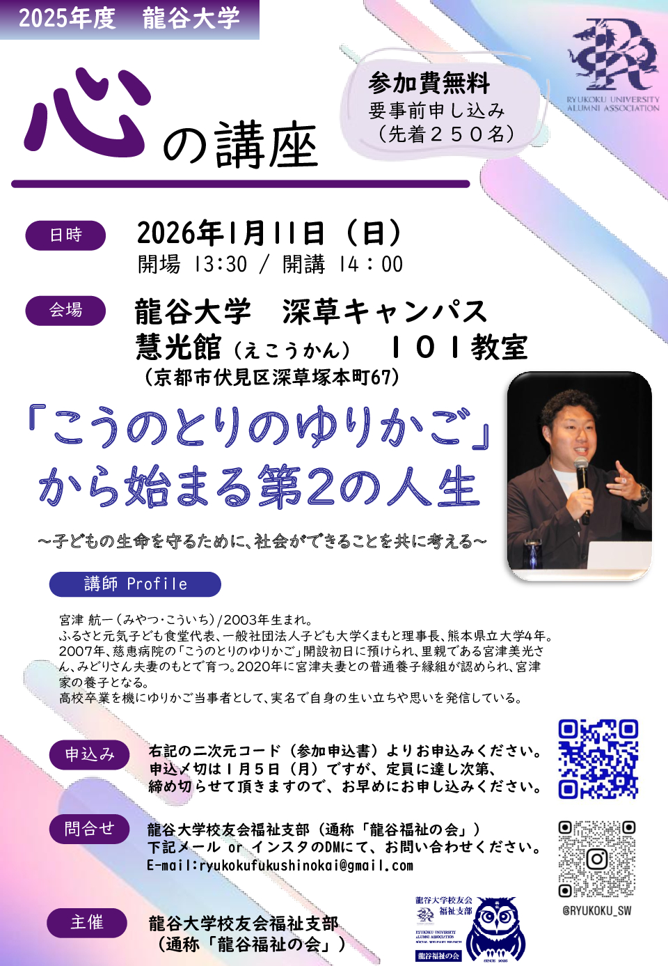 2026年1月11日(日)開催 福祉支部(福祉の会)「龍谷大学心の講座」