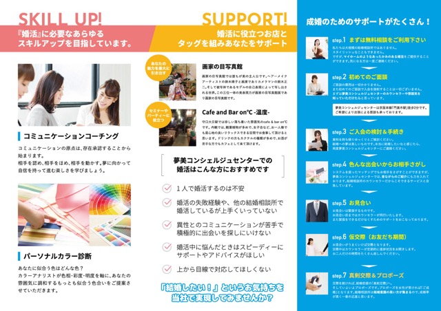 [大阪] 結婚相談所 夢美コンシェルジュセンター 瀧沢 伸一さん ( 1982年卒・法学部 法律) 特典内容:【プランA】事務手数料1万円、登録料3万円、サポート料12万円、月会費6千円、お見合い料(成婚料がかかりません) 総額16万円+月会会費のみ 【プランB】事務手数料1万円、登録料3万円、サポート料無し、月会費12,000円、成婚料10万円 総額14万円+月会費のみ キャンペーン価格に写真サービス12,000円※表示価格はすべて税別です。 |