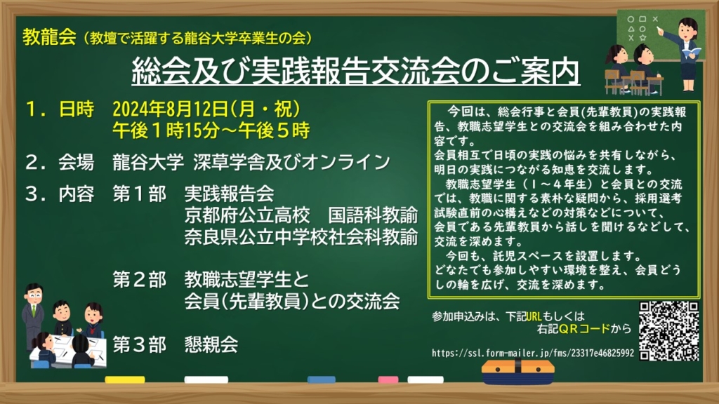 2024年8月12日(月・祝)開催 学校園教員支部(教龍会)「総会・実践報告交流会・懇親会」<開催済み>